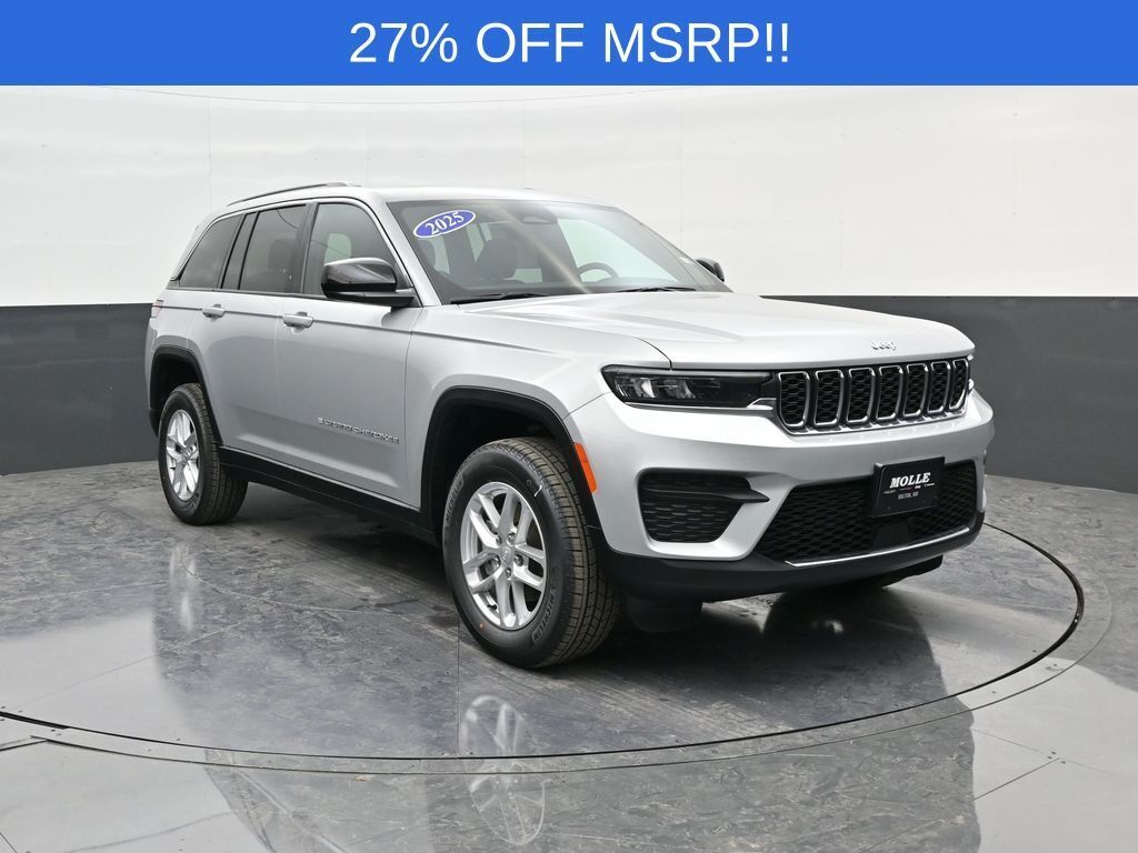 Silver Zynith 2025 Jeep Grand Cherokee Laredo X 4WD 8-Speed Automatic 3.6L V6 24V VVT<br><br>19/26 City/Highway MPG