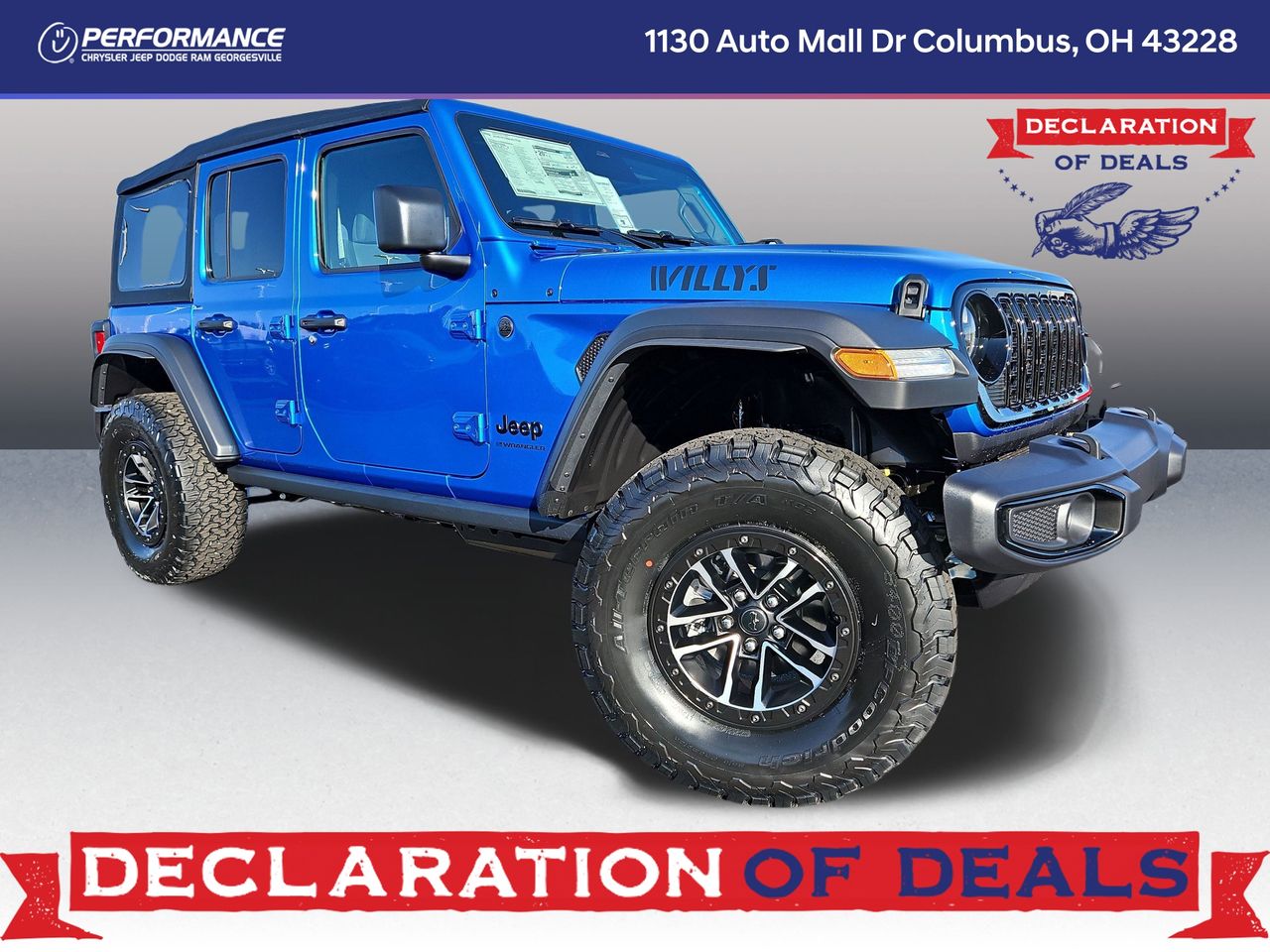 2026 Jeep Wrangler Willys 4WD in Hydro Blue Pearl Coat for Sale in Columbus OH---<br><br>Take your off-road adventures to the next level with the 2026 Jeep Wrangler Willys 4WD finished in striking Hyd...