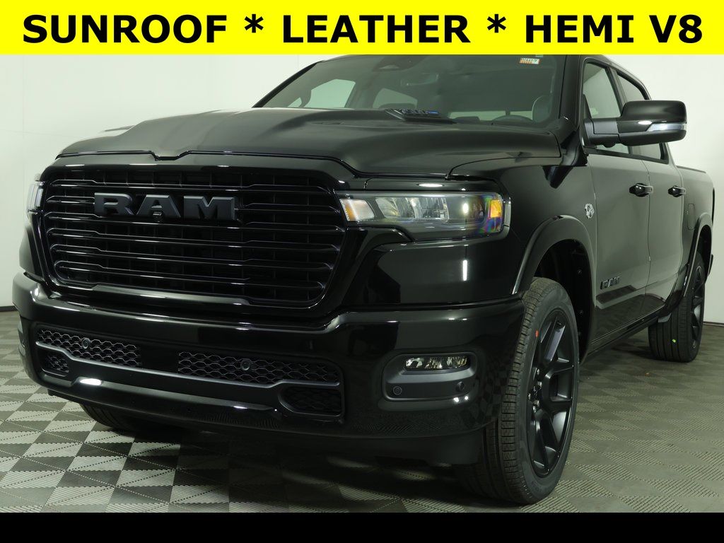AVAILABLE PROGRESSIVE SERVICE RENTAL * Diamond Black Crystal Pearlcoat 2026 Ram 1500 Laramie 4WD 8-Speed Automatic HEMI 5.7L V8 Multi Displacement VVT eTorque ** Adaptive Cruise Control ** All-Wheel D...