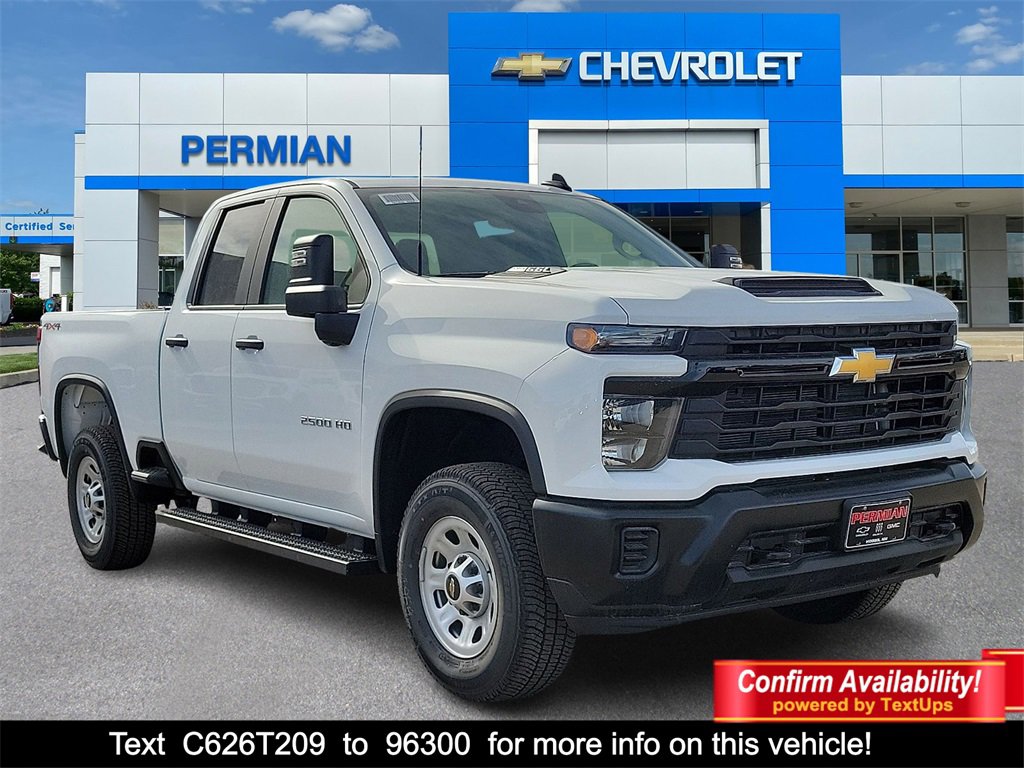 Summit White 2026 Chevrolet Silverado 2500HD Work Truck 4WD 10-Speed Automatic 6.6L V8 10-Speed Automatic, 4WD, Jet Black Vinyl.