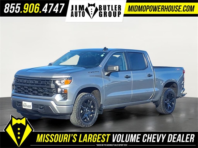 Clean CARFAX. CARFAX One-Owner.<br><br>Sterling Gray Metallic 2024 Chevrolet Silverado 1500 Custom 2.7L I4 Turbocharged DOHC 16V LEV3-SULEV30 310hp 4WD 8-Speed Automatic<br><br><br>Want to find out mo...