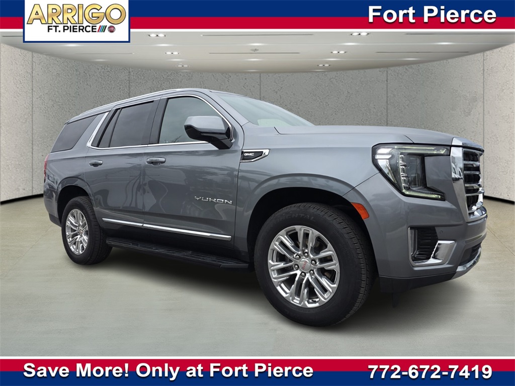 GOTTA GO ARRIGO!!! CALL TODAY BEFORE ITS GONE... 772-837-9458!! GREAT FINANCING OPTIONS AVAILABLE!!<br><br>Certified. Satin Steel Metallic 2022 GMC Yukon SLT RWD 10-Speed Automatic with Overdrive EcoT...