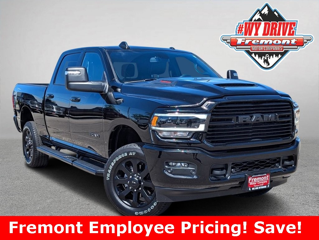 Certified. Diamond Black Crystal Pearlcoat 2024 Ram 2500 Laramie 4WD 8-Speed Automatic 6.4L V8 Bed Utility Group (LED Bed Lighting MOPAR Deployable Bed Step and MOPAR Spray In Bedliner) Heavy Duty Sno...