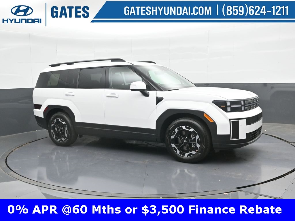 Serenity White 2026 Hyundai Santa Fe SEL 2.5T AWD AWD 8-Speed Automatic with SHIFTRONIC 2.5L I4 Gates Hyundai-859-624-1211 AWD Black wH-Tex Leatherette Seat Trim 18" x 7.5J Alloy Wheels ABS brakes All...