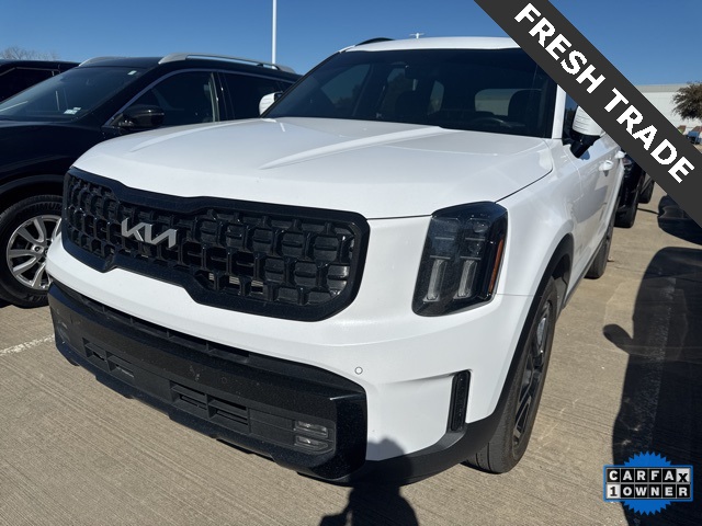 Telluride SX-Prestige X-Line 4D Sport Utility 3.8L V6 DOHC 8-Speed Automatic AWD Glacial White Pearl Black Leather.<br>CARFAX One-Owner.<br><br><br>Certified. Kia Certified Pre-Owned Details:<br><br> ...