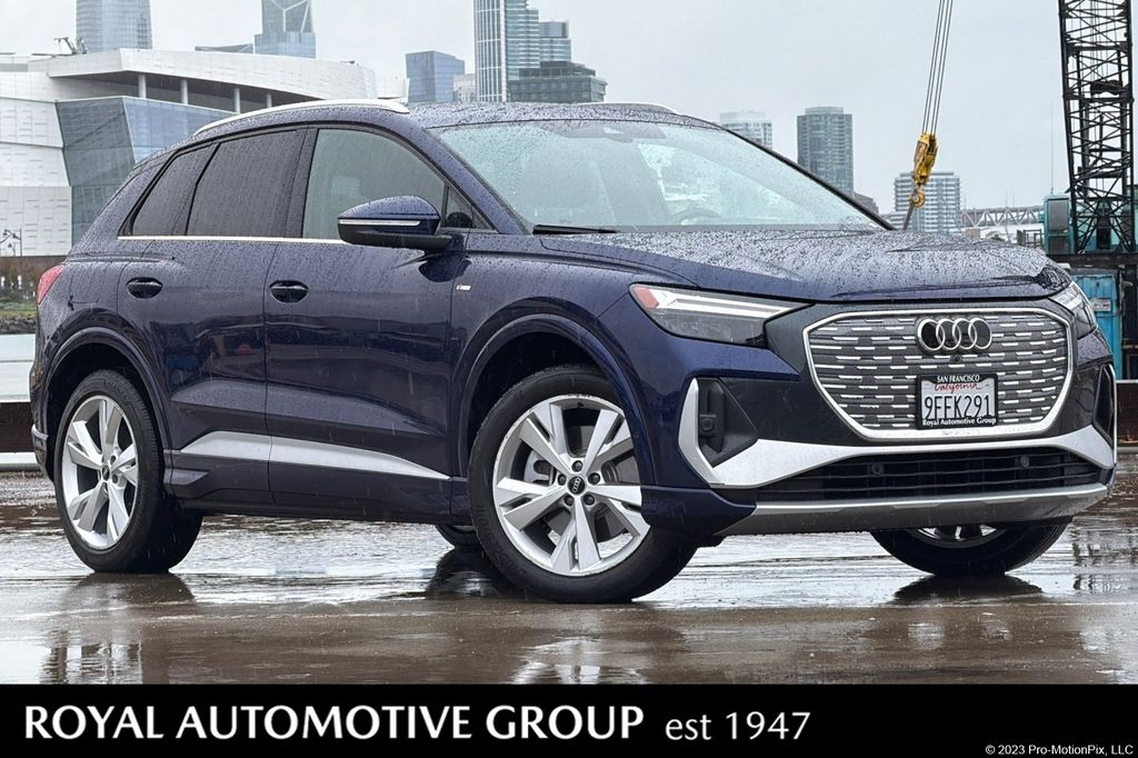 Navarra Blue Metallic 2023 Audi Q4 e-tron Premium Plus AWD.<br><br>CARFAX One-Owner. Clean CARFAX. Odometer is 3556 miles below market average!<br><br>20" Wheel Package Adaptive Cruise Assist wLane Gu...